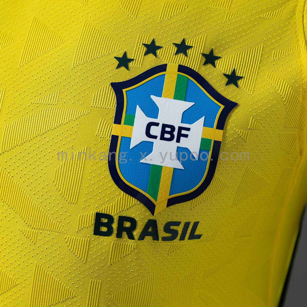 🔥 O manto resgata o clássico Amarelo Canarinho, inspirado nos modelos históricos como o de 1970, com faixas verdes laterais e detalhes que representam a bandeira do Brasil.