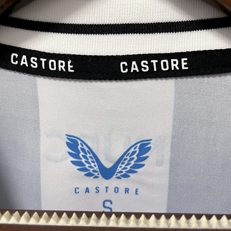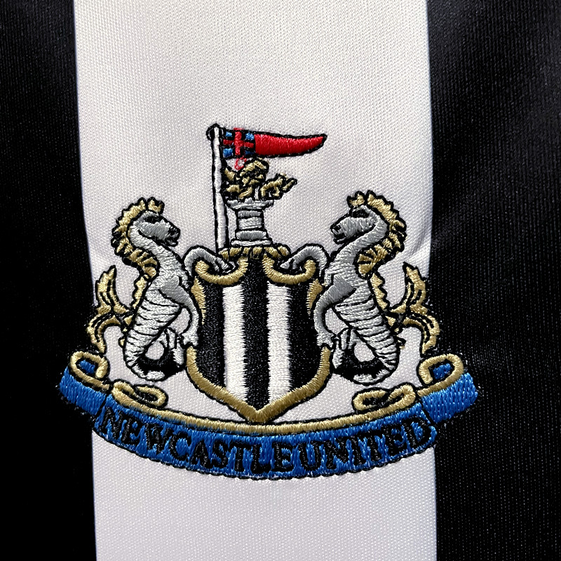 A camisa titular do Newcastle para a temporada traz o tradicional estilo com listras verticais em preto e branco. A gola é redonda na cor branca com fina linha central preta, sendo que o mesmo padrão é visto nos punhos. escudo do Newcastle é aplicado no lado esquerdo do peito, enquanto o logo da Castore é visto em azul, cor que também aparece na sigla “NUFC” na nuca.
